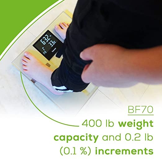 Beurer F70 Body Fat Scale, Weight, Water and More, Smart Digital Scale for Whole Body Analysis, BMI and Calorie Display, App Sync via Bluetooth, User Identification, 8 Memory Spaces, Grey