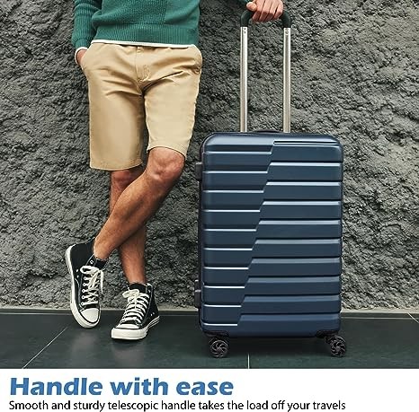 • ABS+PC material, durable and lighter hard shell, features textured finish to prevent against scratches. The beveled edge design on the upper part increases toughness for the luggage.