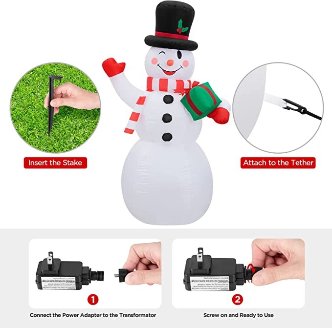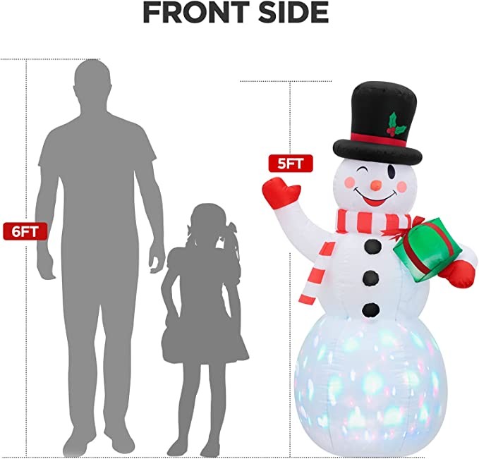 MAOYUE Christmas Inflatables, 5FT Outdoor Christmas Decorations, Inflatable Snowman Blow up Built-in Colorful Lights with Sandbags,Tethers, Stakes for Holiday, Outside, Yard, Lawn, Garden