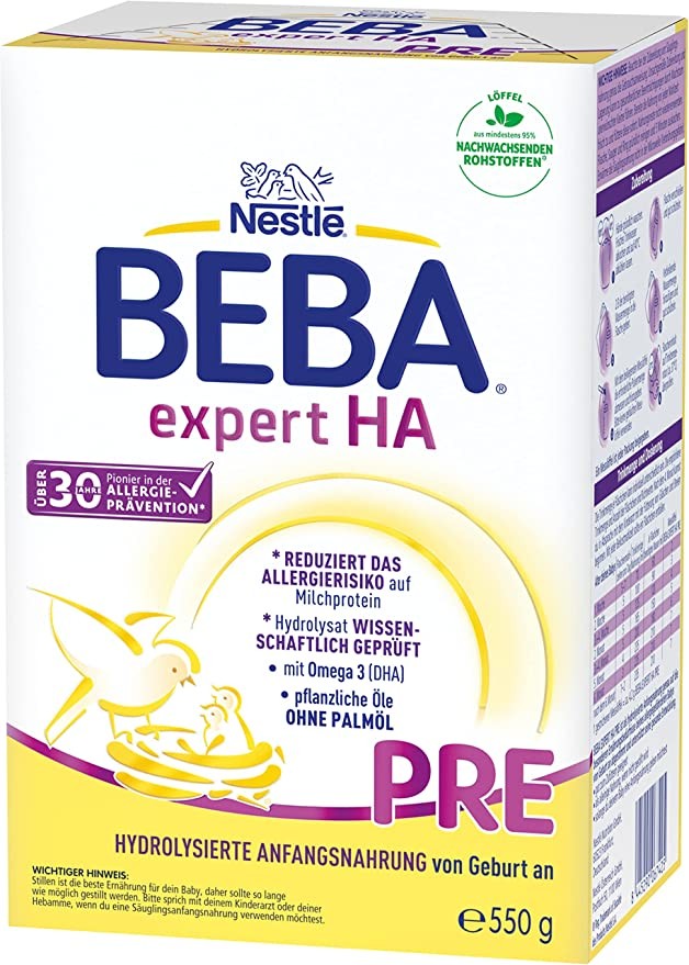Nestlé BEBA EXPERT HA PRE Hydrolyzed Baby Milk Powder for Newborn 6 Bottles (6 x 550g)