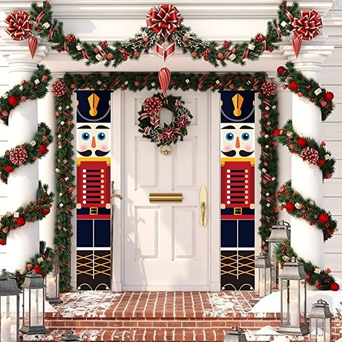 Nutcracker Christmas Decorations -Outdoor Christmas Porch hanging Decorations-Soldier Model Nutcracker Banners - for Holiday Outdoor Indoor Kids Garden Yard Party- 1 Pair