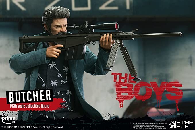 • This Butcher 1/6 scale figure has over 30 articulation points. Authentic head looks include Karl Urban and Billy looks and feature detailed hand-painting. He comes with the trade tools Billy uses; a sniper rifle, cattle products, a shovel and a crowbar.