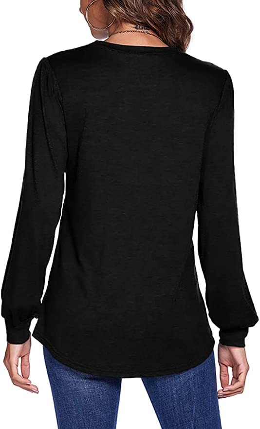 Womens Button Back Tops Balloon Sleeve Loose Casual Workout O Neck Blouses