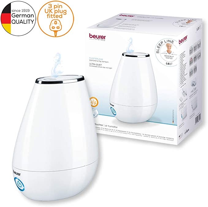 Beurer LB37 2-in-1 Essential Oil Diffuser & Air Humidifier | Aromatherapy & Ultrasonic Air Vaporizer | Night Mode & Auto Off - Quiet & Energy Saving | Includes 15 Aroma Pads | White