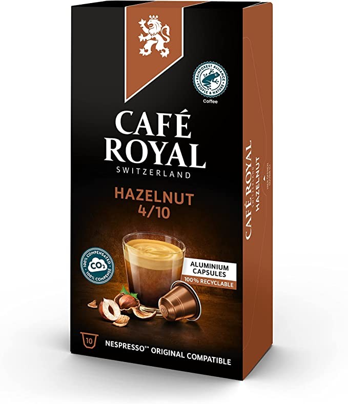 Café Royal Hazelnut Edition Nespresso (R)* 100 Compatible Aluminum Coffee Pods, Strength 4/10, 10x10 Pods