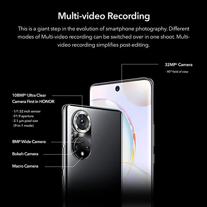HONOR 50 Phone 5G Unlocked 8+256 GB Smartphone with 108 MP Camera, 120 Hz 6.57 Inch OLED Curved Screen, Snapdragon 778, Battery 4300mAh, Android 11