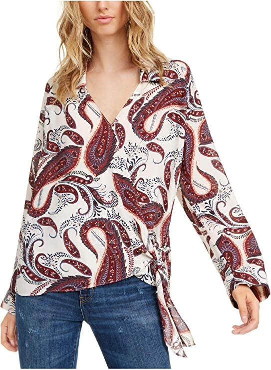 Leyden Women's White Paisley Long Sleeve V Neck Wrap Top Size L