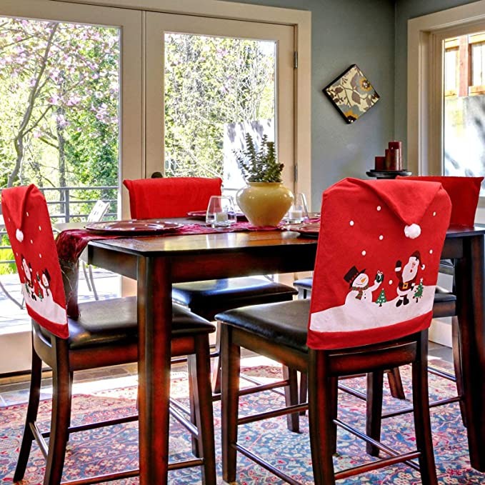 MSQ 2022 Christmas Decorations Red Christmas Chair Back Covers Decorations, Set of 2 Santa Claus Snowman Hat Xmas Chair Seat Slip cover for Christmas Dining Room Kitchen Party Decoration Ornaments
