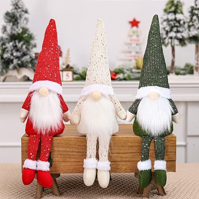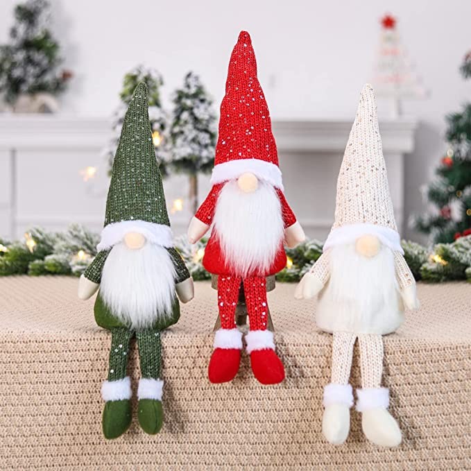 QIFU Gonks Christmas Decorations, 3Pcs Christmas Gnome, 45CM Tall Handmade Swedish Tomte Gnomes Plush, Xmas Gonks for Home Office Table Decoration Christmas Tree Hanging Decoration Children Xmas Gift