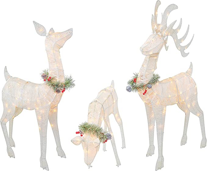 Top Treasures 3 Piece Reindeer Family Lighted Deer Set 210 Lights 52" Buck 44" Doe 28" Fawn Large Deer Family for Indoor or Outdoor Christmas Decorations Yard Art