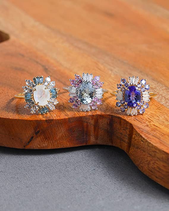 YoTreasure Tanzanite and White Zircon Rough Ring in 14K Yellow Gold Jewelry